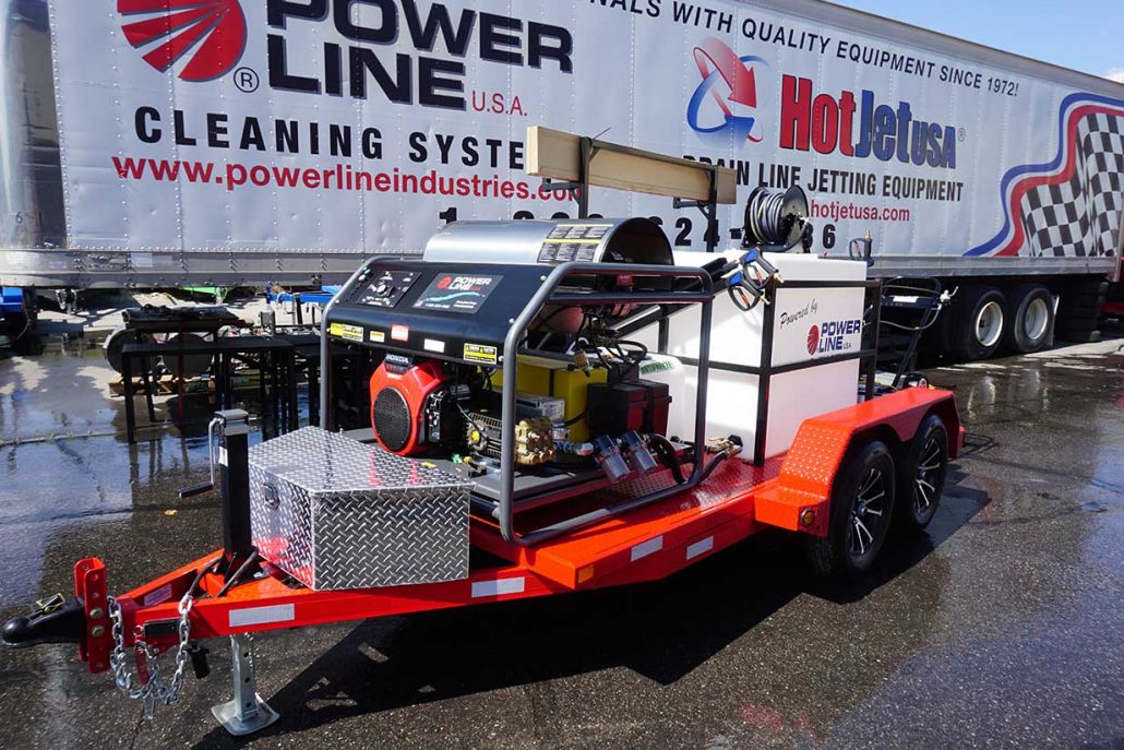 This complete Trailer Wash Unit features Power Line’s Top Selling Honda GX690 Power Skid Unit. All components professionally mounted on a 12′ tandem axle custom built trailer that is turn-key ready for professional power washing.